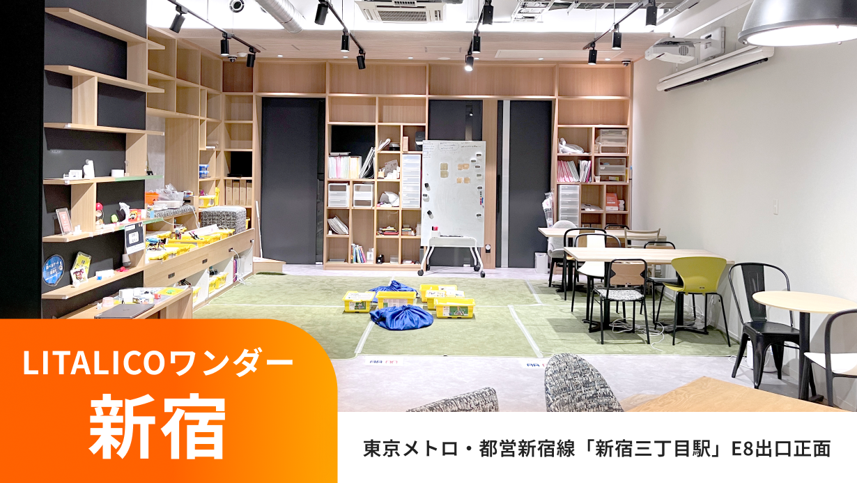 高島屋を過ぎた先にある、右手のビル1Fへ(LITALICOワンダー 新宿の看板)